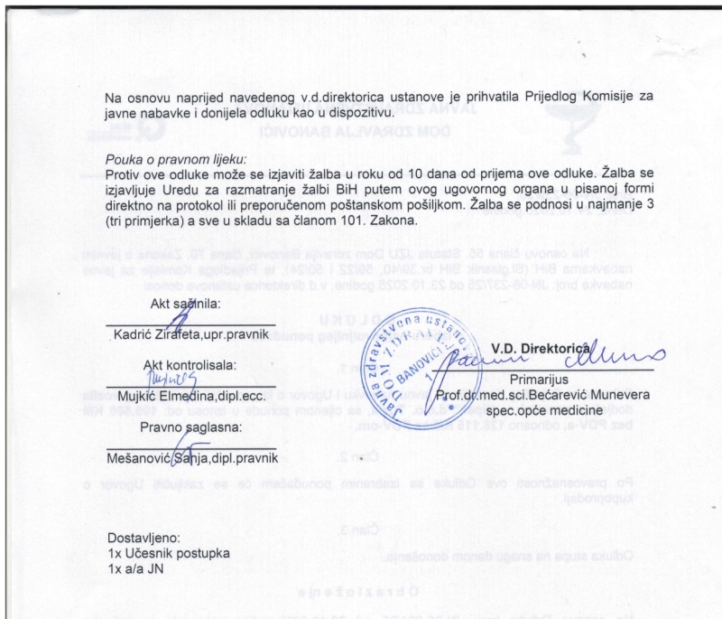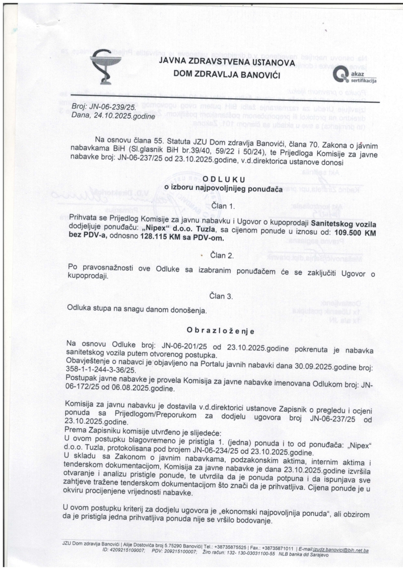 2025-11-26 19:42:05 - ODLUKA O IZBORU NAJPOVOLJNIJEG PONUĐAČA - SANITET